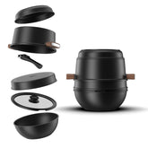 Le CookingTotem est résistant au four jusqu'à 220°C, à l'exception des couvercles, des poignées et de la casserole à soupe.